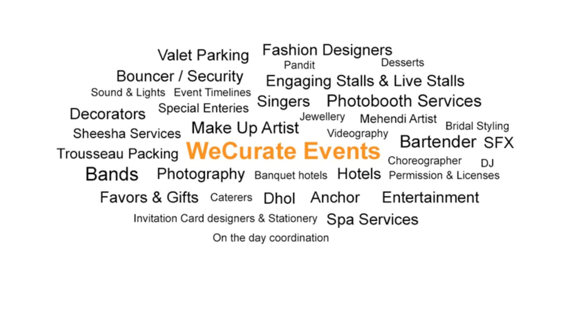 You can book all event-related services through us. We can assist you right from sourcing of venues, to providing you balloon décor/ floral décor/general decorators to Caterers to bartenders to makeup/mehndi artist to photographers and more. Not only do we handpick every single vendor ensuring you are only getting the best, but our expert (wedding concierges will suggest you the upcoming trends for your event).